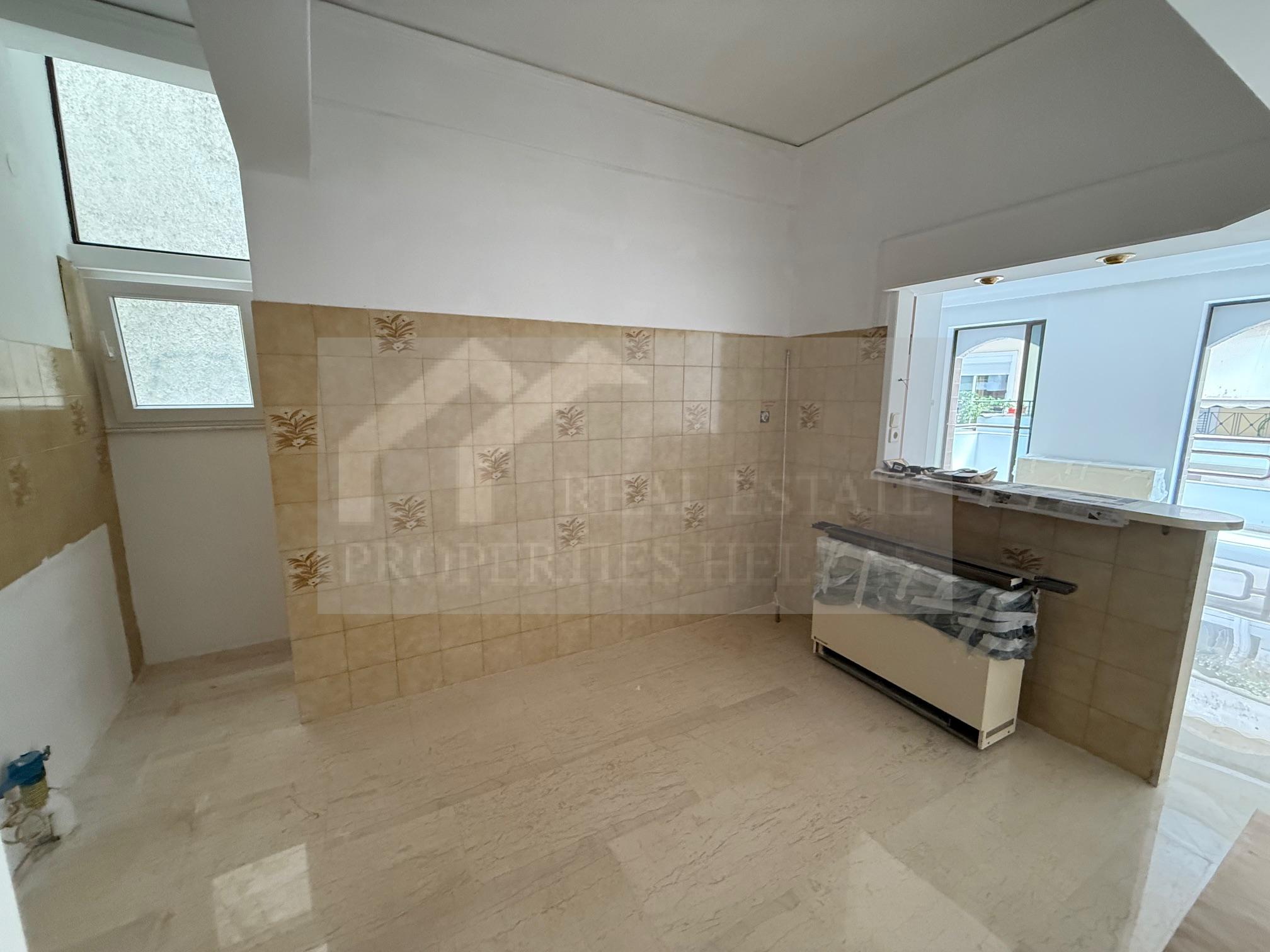 Το διαμέρισμα είναι διαμπερές, με μπαλκόνια μπροστά και πίσω, και βρίσκεται σε φάση ανακαίνισης, η οποία περιλαμβάνει γυάλισμα μαρμάρων, τοποθέτηση νέων εσωτερικών πορτών και ντουλαπών στα υπνοδωμάτια. Διαθέτει δύο άνετες κρεβατοκάμαρες, ενιαίο χώρο σαλονιού-κουζίνας, πόρτα ασφαλείας και τριφασικό ρεύμα. Η θέρμανση γίνεται ανά δωμάτιο με θερμοπομπούς.
