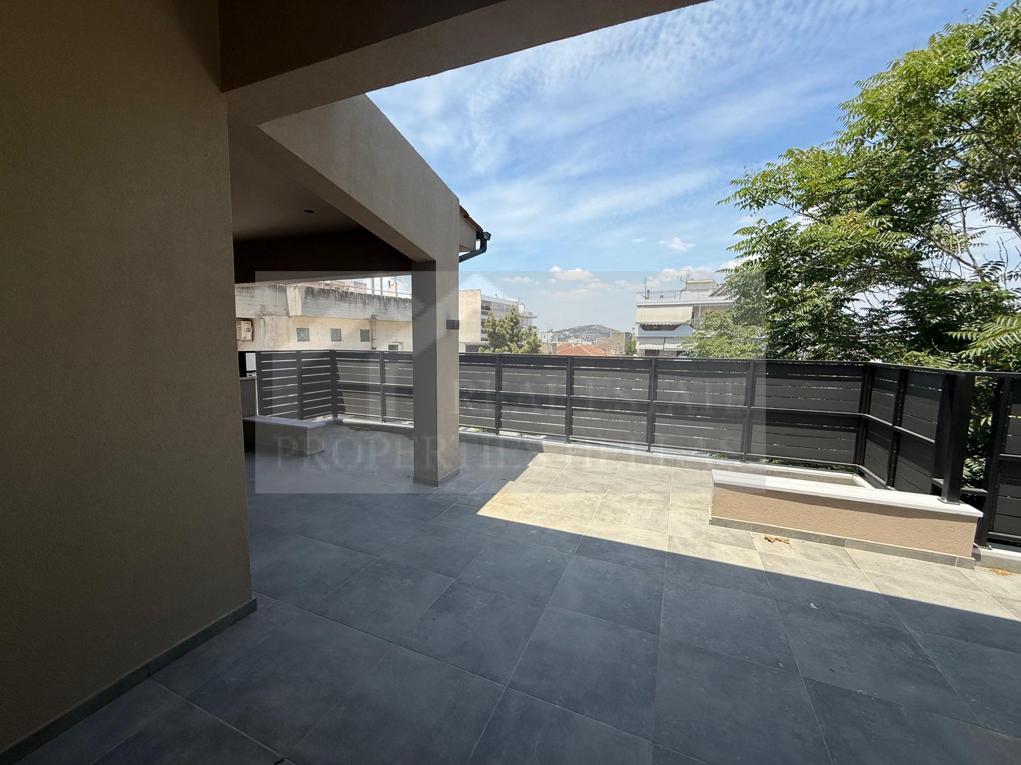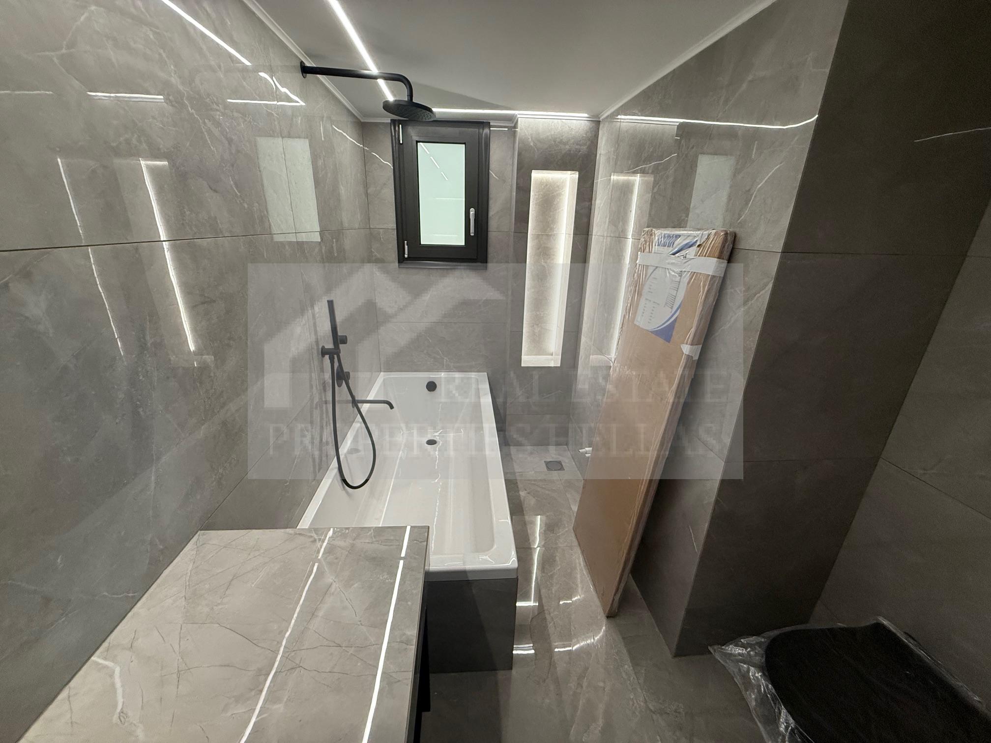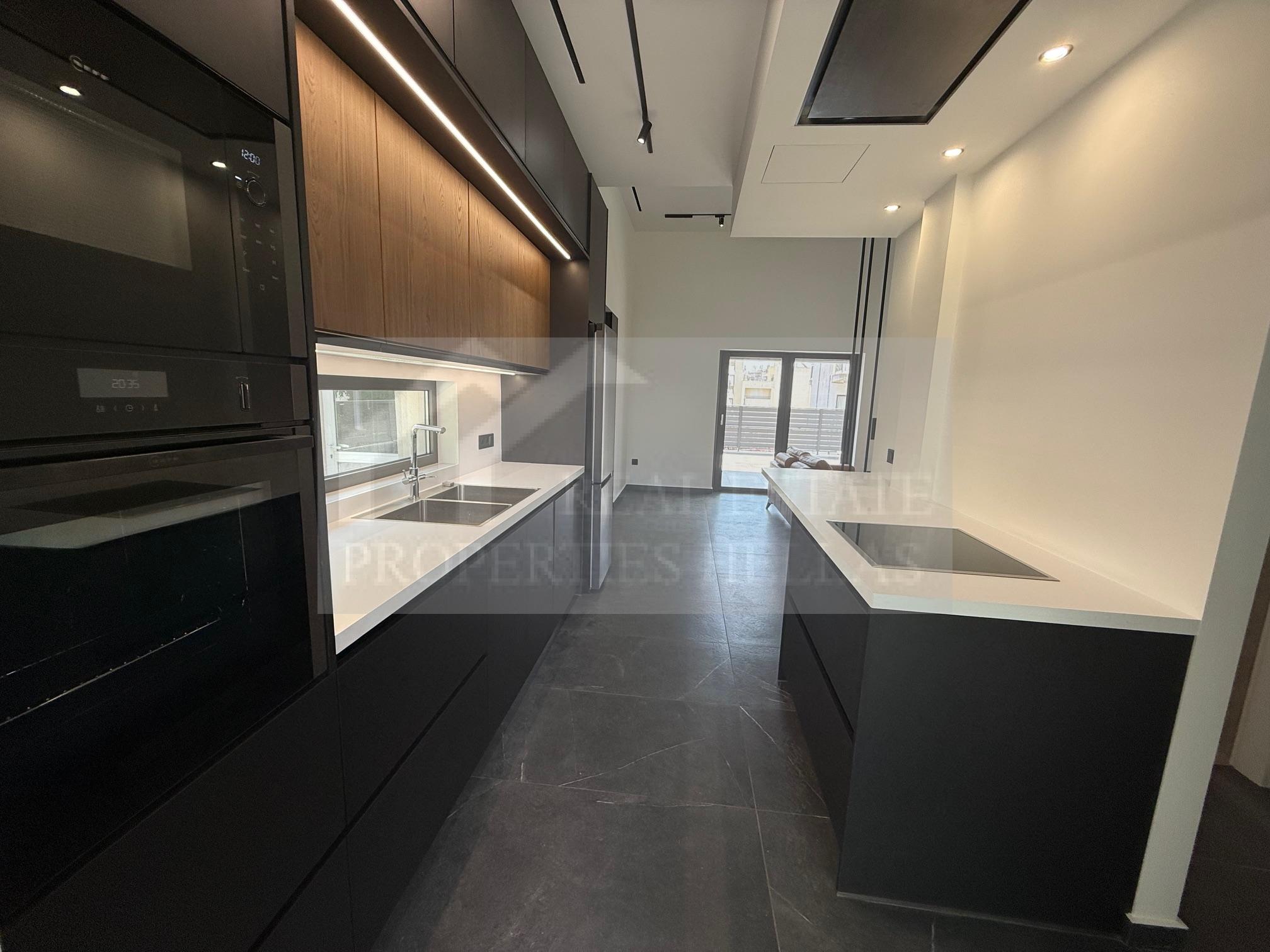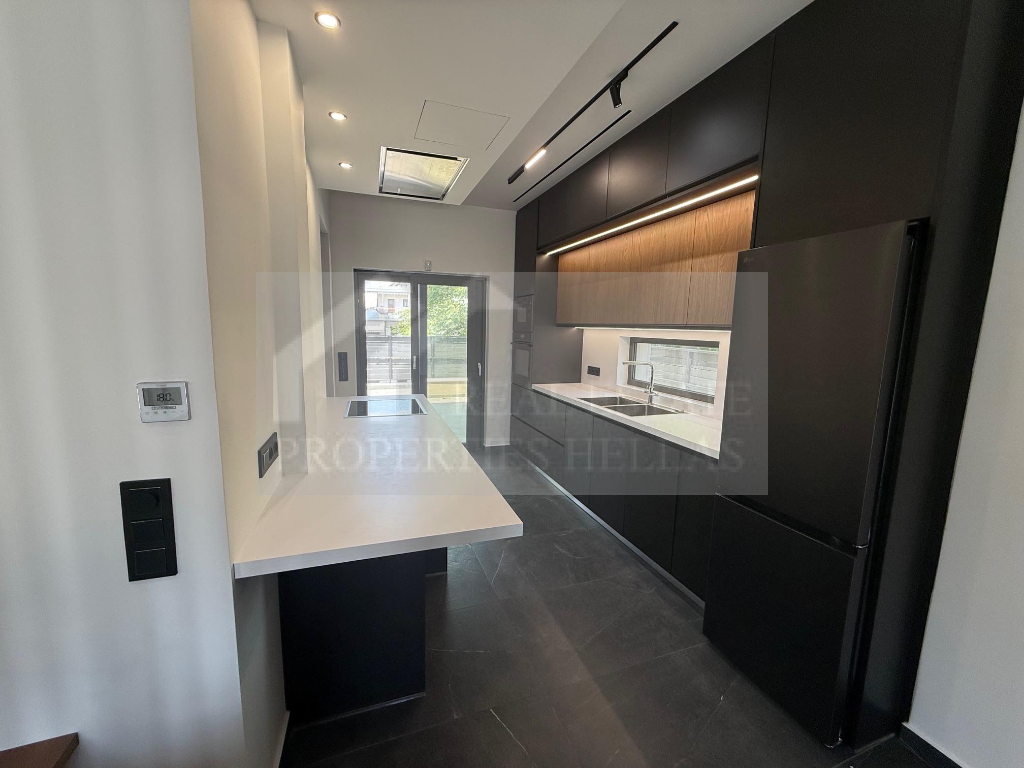 In one of the most vibrant yet refined areas in the center of Halandri, surrounded by trees, cafés, and culture, lies an apartment that stands out for both its architectural design and the sense of calm it conveys. This is a fully furnished, dual-aspect apartment of 55 sq.m., with terraces totaling 110 sq.m., completely renovated in 2025 under the direction of an architect. The renovation went far beyond aesthetics; advanced materials and technologies were integrated with the aim of achieving maximum comfort and energy efficiency. ALUMIL aluminum frames with insect screens, external thermal insulation, and an LG heat pump with two fan coil units ensure ideal climate control throughout the year. The apartment holds an A+ energy rating, offering high performance with low energy consumption. The interior is bright and welcoming. The kitchen, equipped with NEFF, Bosch, and LG appliances, is seamlessly connected to the living area. NIESSEN switches by ABB, Porcelana granite tiles, and 4000K LED lighting define a space that is modern, clean-lined, and tastefully refined. The two large terraces provide a rare sense of openness, featuring an electric pergola, seating area, and pre-installed infrastructure for a jacuzzi and outdoor shower. Ideal for relaxation, social gatherings, or even working outdoors. The apartment includes two bedrooms, a security door, an alarm system, and is delivered furnished, with pieces carefully chosen to match the aesthetic identity of the space. A property with character, high-quality materials, and thoughtfully designed details perfectly suited for those who value functionality, architectural clarity, and refined craftsmanship, right in the heart of Halandri.