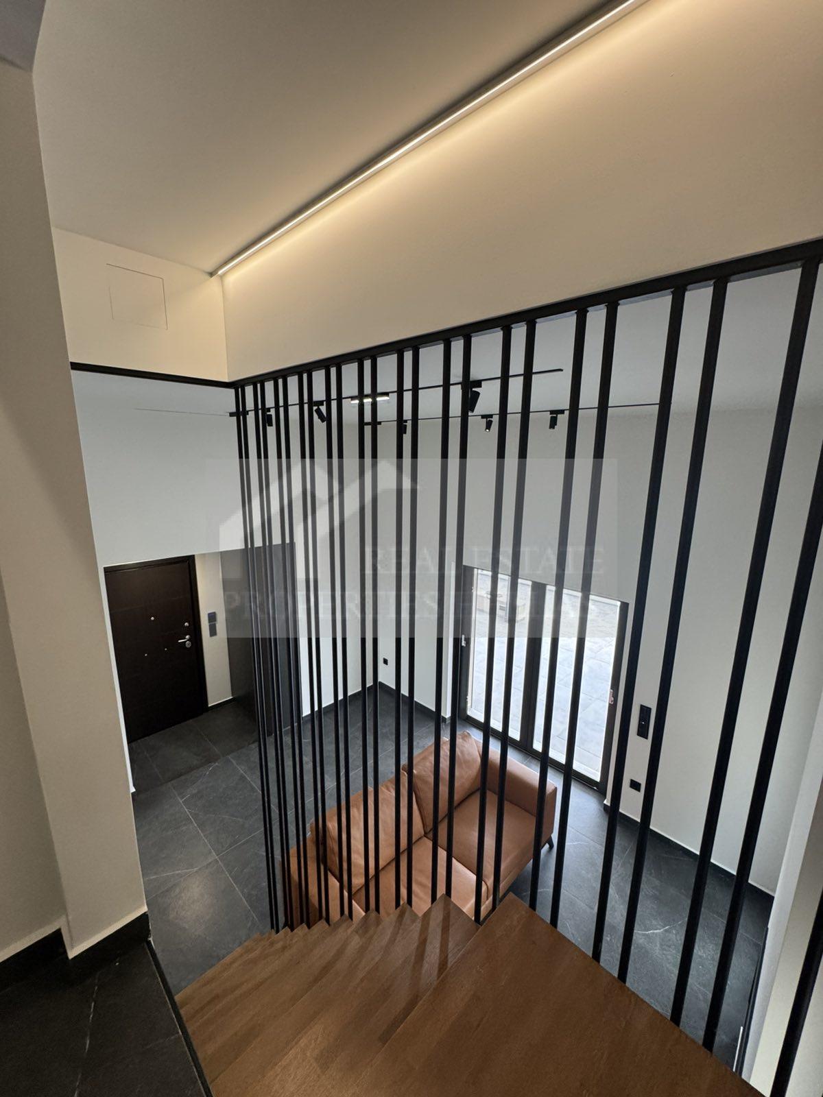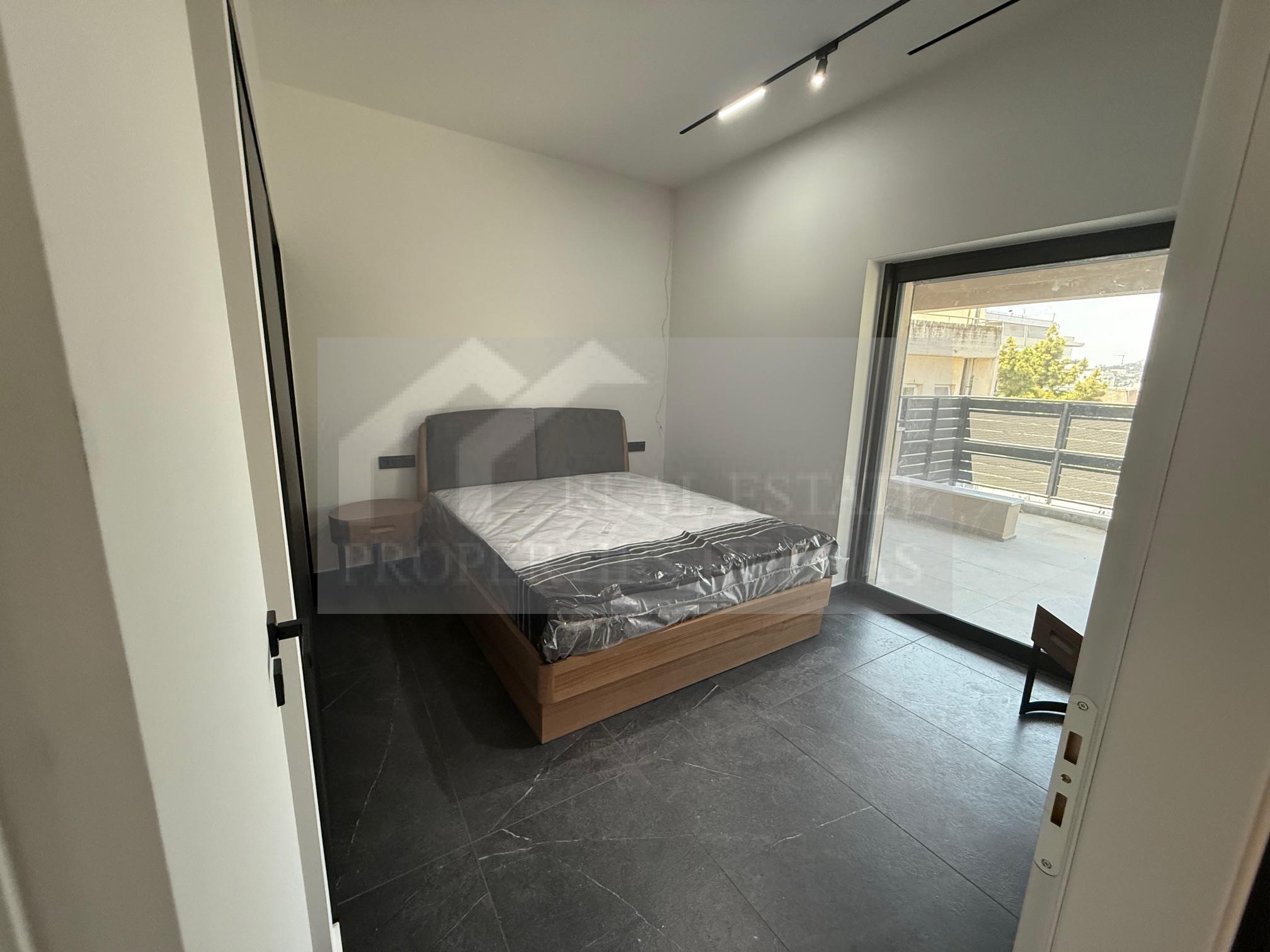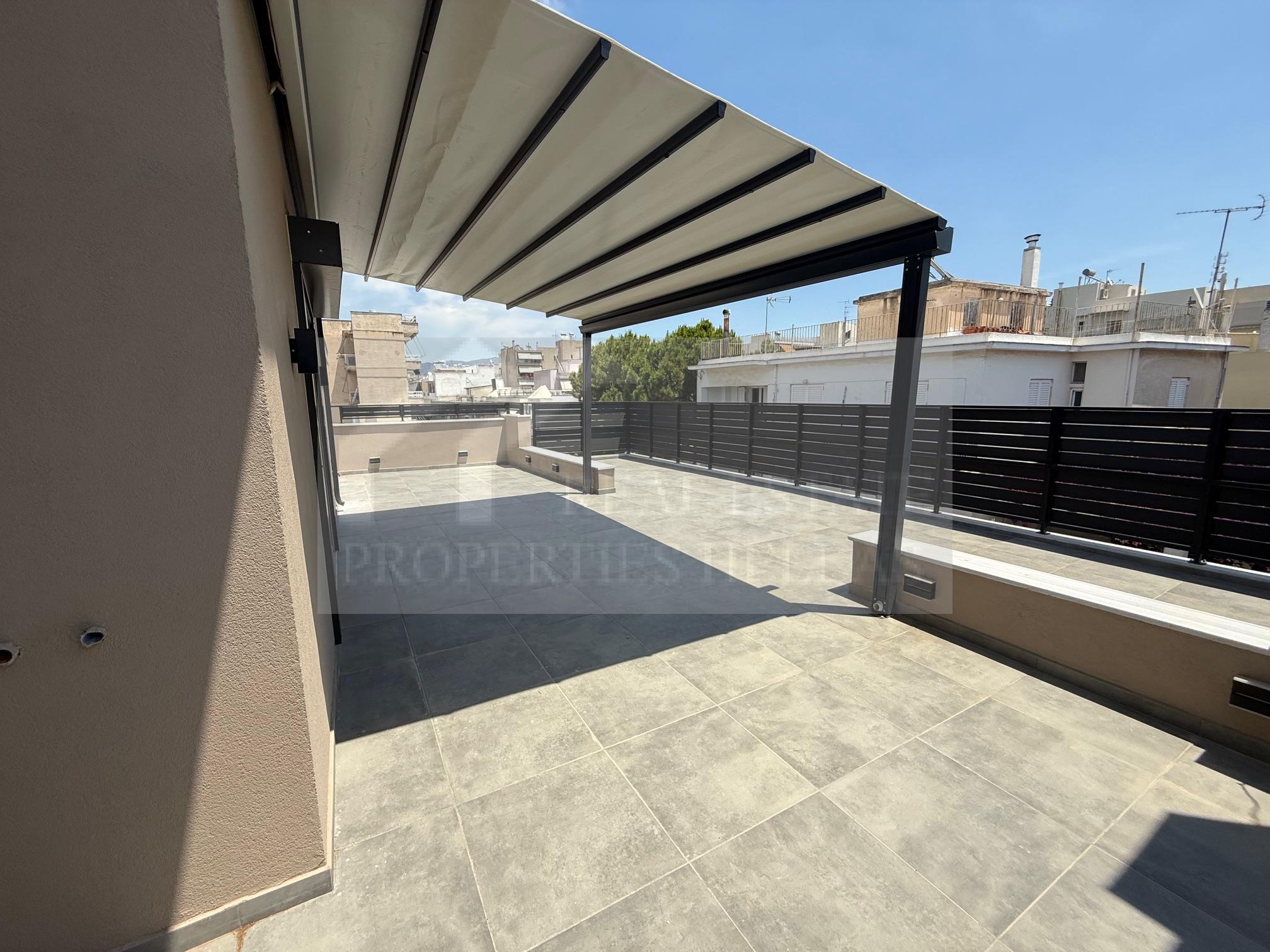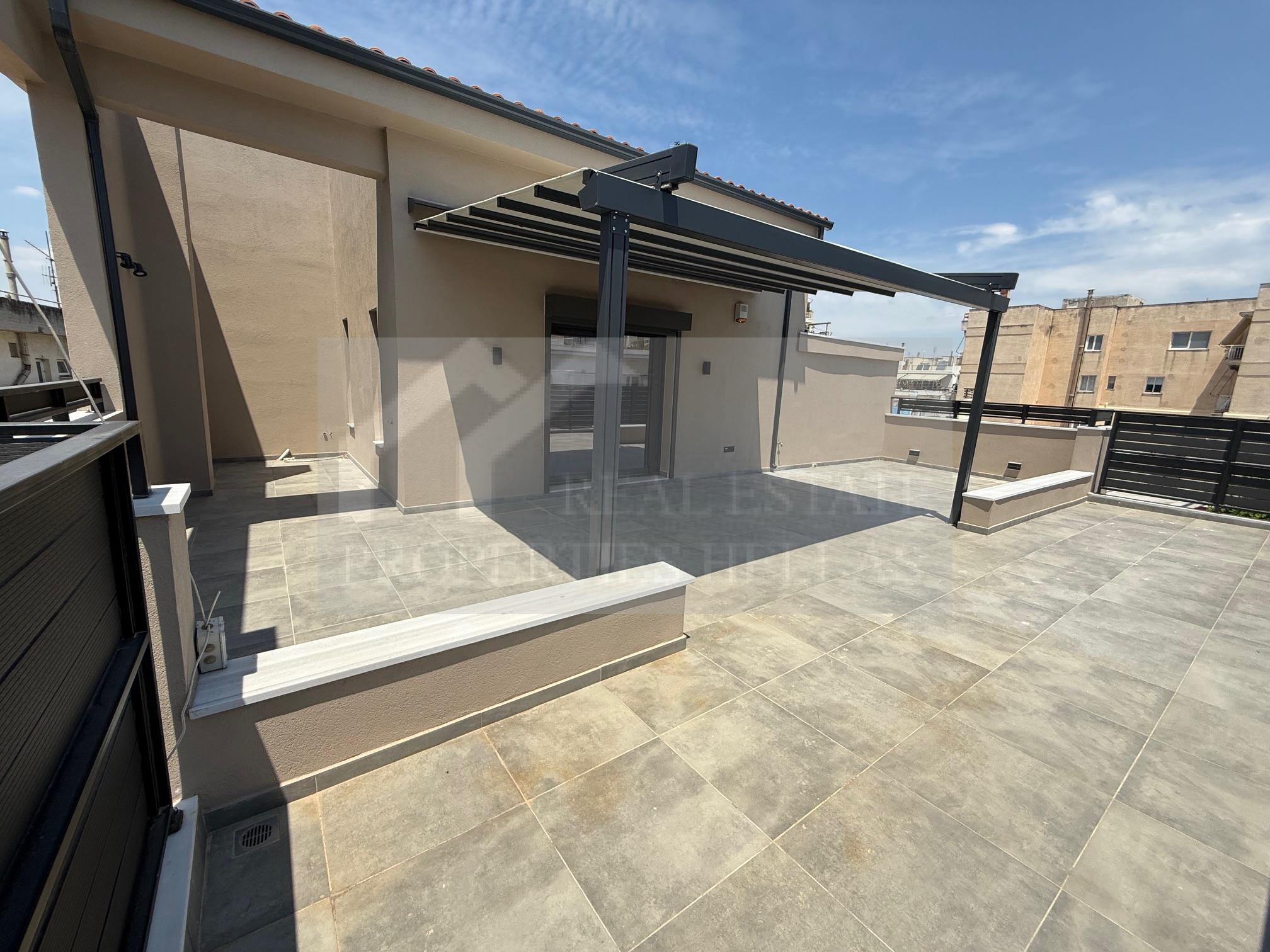 In one of the most vibrant yet refined areas in the center of Halandri, surrounded by trees, cafés, and culture, lies an apartment that stands out for both its architectural design and the sense of calm it conveys. This is a fully furnished, dual-aspect apartment of 55 sq.m., with terraces totaling 110 sq.m., completely renovated in 2025 under the direction of an architect. The renovation went far beyond aesthetics; advanced materials and technologies were integrated with the aim of achieving maximum comfort and energy efficiency. ALUMIL aluminum frames with insect screens, external thermal insulation, and an LG heat pump with two fan coil units ensure ideal climate control throughout the year. The apartment holds an A+ energy rating, offering high performance with low energy consumption. The interior is bright and welcoming. The kitchen, equipped with NEFF, Bosch, and LG appliances, is seamlessly connected to the living area. NIESSEN switches by ABB, Porcelana granite tiles, and 4000K LED lighting define a space that is modern, clean-lined, and tastefully refined. The two large terraces provide a rare sense of openness, featuring an electric pergola, seating area, and pre-installed infrastructure for a jacuzzi and outdoor shower. Ideal for relaxation, social gatherings, or even working outdoors. The apartment includes two bedrooms, a security door, an alarm system, and is delivered furnished, with pieces carefully chosen to match the aesthetic identity of the space. A property with character, high-quality materials, and thoughtfully designed details perfectly suited for those who value functionality, architectural clarity, and refined craftsmanship, right in the heart of Halandri.